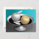 Gold and silver apples on a silver pedestal postcard