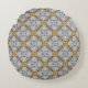 Gold and Silver Laced Grey Medallions Pattern Round Cushion