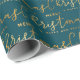 Gold and Teal Merry Christmas Word Art Wrapping Paper