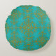 Gold and Turquoise Floral Damask Style Pattern Round Cushion