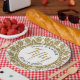 Celebrate the happy couple with this elegant gold and white 50th anniversary paper plate, text and font are easily customisable when you order