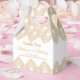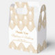 Gold and white art deco pattern wedding thank you favour box. The design features gold on white art deco inspired motif, bride's and groom's names and the date in gold. 1920's Gatsby style.