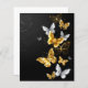 Gold, jewellery and white butterflies on black background. Golden butterfly.