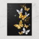 Gold, jewellery and white butterflies on black background. Golden butterfly.