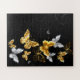 Gold, jewellery and white butterflies on black background. Golden butterfly.