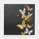 Gold, jewellery and white butterflies on black background. Golden butterfly.