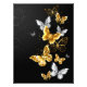 Gold, jewellery and white butterflies on black background. Golden butterfly.
