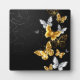 Gold, jewelry and white butterflies on black background. Golden butterfly.
