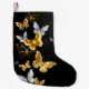 Gold, jewellery and white butterflies on black background. Golden butterfly.