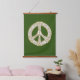 Stylish wall tapestry features gold and white intricate Celtic peace symbol on green background.