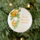 This round Christmas ornament with gold writing and white and gold decorative design is very pretty. If I had been more experienced in designing, I'd have picked a darker color print to personalize it instead of matching the print already on the ornament. As it stands now...it's quite pretty, but I believe the words would be better seen if darker. As already reported, I think it would look better if I had used a darker color on the personalized print.