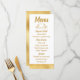 Add some fun to your tables with this elegant gold and white glam wedding party menu card.