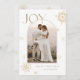 Gold and White Joy Arch Modern Snowflake Photo Holiday Card