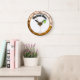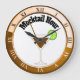 A fun clock with a gold dial and a matching gold martini glass with a straw and a slice of lime is featured in the center. The words, Mocktail Hour, are included in bold print within the clock face. Great for a bar, kitchen, or entertainment area.