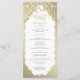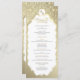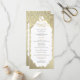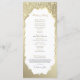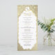 his wedding program card features a minimalist gold and white design, combining purity with timeless elegance. The front displays the couple’s names inside a golden frame against a clean white background, creating a fresh and refined appearance. The back page presents the complete wedding details in a modern, uncluttered layout accented with golden highlights. The graceful pairing of white’s simplicity with gold’s luxury makes this program perfect for formal, elegant, and memorable wedding celebrations.
