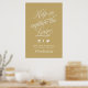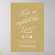 Affordable custom printed large scale wedding sign personalized with your wedding hashtag for guests to share their photos with you on social media. Keep the chic gold and white color scheme with elegant calligraphy script font as shown, or use the design tools to choose a different background color to perfectly match your wedding theme. Add a frame at checkout or choose a custom poster size to fit any frame.