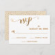 Here's a festive choice for your wedding event response needs. Over a white background (the colour can be changed to anything you prefer,) I've placed typography graphics that read "rsvp" and "m" featuring an elaborate script font embellished with hearts. The graphic has been overlaid with a smooth faux gold effect. A corresponding golden hue was used to render your personal details. Use the template fields to add your own details and click to customise further if you'd like to make any additional modifications. All layers are unlocked to allow for all the positioning and sizing control you desire. The back was covered in a festive repeating pattern of nested faux-gold squares rotated to a diagonal.
