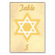 An excellent table seating card that is simply amazing,  this design features a golden background displaying your table number gold font.  A gold and white Star of David is in the centre of the table card.  Same design on front and black.  Purchase yours today!