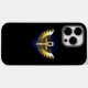 Golden Egyptian ankh with patterned, shiny wings on a black background. Magic symbol.