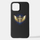 Golden Egyptian ankh with patterned, shiny wings on a black background. Magic symbol.