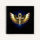Golden Egyptian ankh with patterned, shiny wings on a black background. Magic symbol.