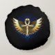 Golden Egyptian ankh with patterned, shiny wings on a black background. Magic symbol.