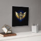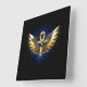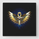 Golden Egyptian ankh with patterned, shiny wings on a black background. Magic symbol.