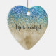 Gold Aqua Purple Glitter Sparkle Ceramic Tree Decoration