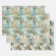 Gold Aqua White Tropical Leaves Wrapping Paper Sheet