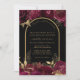 Gold Arch Dark Burgundy Roses Floral Black Wedding Invitation