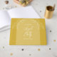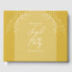 This wedding guest book is shown in an arch style and features a floral design. Shown in a gold colour. Great day of stationery for your wedding. Customise the text on the front and change the text on the side panel. Use the template to create your own gold arch style floral wedding guest book.