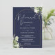 Gold Arch Greenery Navy Blue Rehearsal Dinner Invitation