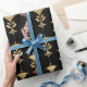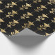 Gold Art Deco Style Flowers on Black Wrapping Paper
