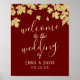 Gold Autumn Leaves Burgundy Red Fall Wedding Welcome Sign.
