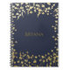 Gold Baby's Breath Floral Elegant Blue Notebook. Customise the front with or without text.