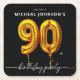 Gold Balloon Black 90th Birthday Party Square Paper Coaster