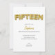 Celebrate fifteen fabulous years with this modern gold balloon 15th birthday photo invitation! The design features bold “FIFTEEN” in faux gold foil balloon letters and a space for your teen’s favourite photo. All text is fully editable, allowing you to customise the name, event details, and RSVP in just a few clicks.