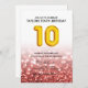 Gold Balloon Red Glitter 10th Birthday Party Invitation