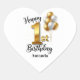 Seal envelopes or decorate party favors with this adorable sheet of personalized heart-shaped stickers, perfect for a baby's 1st birthday party or shower. The design features a stunning faux gold number '1' and a festive cluster of metallic gold and white balloons. This sheet includes 20 customizable stickers, making them ideal for gift tags, sweet cones, thank you notes, or envelope seals.
