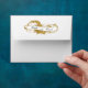 Pair these elegant Gold Banner Wedding RSVP Response Card Envelopes with their matching 4.25"x5.5" Gold Banner Wedding Reply Cards to create a coordinated marriage stationery set. Customise it with your own personal name and return address on the front of the envelope. These classy custom wedding envelopes feature a gold tone leaf and scroll design.