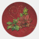 Gold Beaded Swirls and Christmas Floral Classic Round Sticker