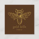 Modern square business card features gold vintage bee illustration on dark brown background with contemporary text on front, and  customisable QR code for your website or social media on back.