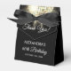 In a dazzling shade of gold, this favour box exudes a sense of excitement and celebration. The disco ball graphic transports you back to the days of dance floors illuminated by sparkling lights, creating an atmosphere of joy and festivity. It's the perfect vessel to hold surprises and treats for your guests, ensuring they remember your milestone birthday celebration with a smile.