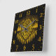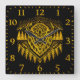 Gold Bison Head With Mountains and Trees Square Wall Clock
