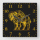 Gold Bison in Astronaut Suit Exploring Space Square Wall Clock