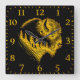 Gold Bison Portrait With Forest Silhouette Design Square Wall Clock