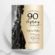 Black and gold agate 90th birthday party invitation. Elegant modern design featuring rock stone marble geode background, faux glitter gold and typography script font. Trendy invite card perfect for a stylish women's bday celebration. Printed Zazzle invitations or instant download digital printable template.
