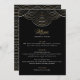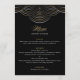 This art deco style menu features your salad, entrée options and dessert in a very elegant white and gold lettering on a very rich back background. It perfectly coordinates with the Art Deco String Lights wedding collection. Use it to personalise your menu, all the wording and colours can be completely customise. Just click "further customisation" to add, remove or move elements or changing size and colours. If you need help, do not hesitate to contact me. I'll be happy to help. Contact me via the "Ask this Designer" link on this page.