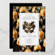A bold New Year's Eve masquerade party foil invitation for your celebration, featuring a beautiful mask and gold and black balloons with gold glitter.