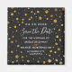 Gold Black Confetti Wedding Save the Date Magnets - features a vintage black background with faux gold glitter foil for elegant decor. This design also features modern and elegant fonts for the text layout.